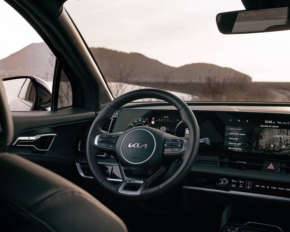 Experience a world of luxury and comfort inside the 2024 Sportage's cabin. Boasting a snazzy interior design and a large digital display on the dashboard, the Sportage offers a captivating space for drivers and passengers alike. Customize your cabin with the two-tone colour scheme or opt for the sleek all-black interior for a touch of understated elegance. The center console features intuitive controls integrated seamlessly into the sleek design, ensuring a seamless and sophisticated driving experience.