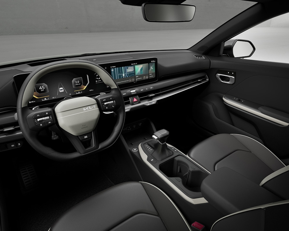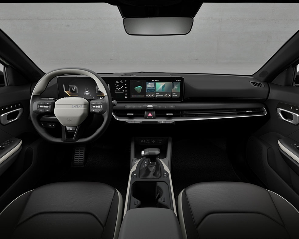 Kia has harmoniously crafted the interior of the K4, presenting a clean and minimalist design language. The linear layout of the dash, coupled with a generous infotainment display and thoughtfully placed physical controls, creates an ambiance of simplicity and sophistication. The steering wheel, adorned with an offset logo and a distinctive two-spoke design, exudes a sense of modernity and comfort, underscoring Kia's commitment to providing a captivating driving environment.