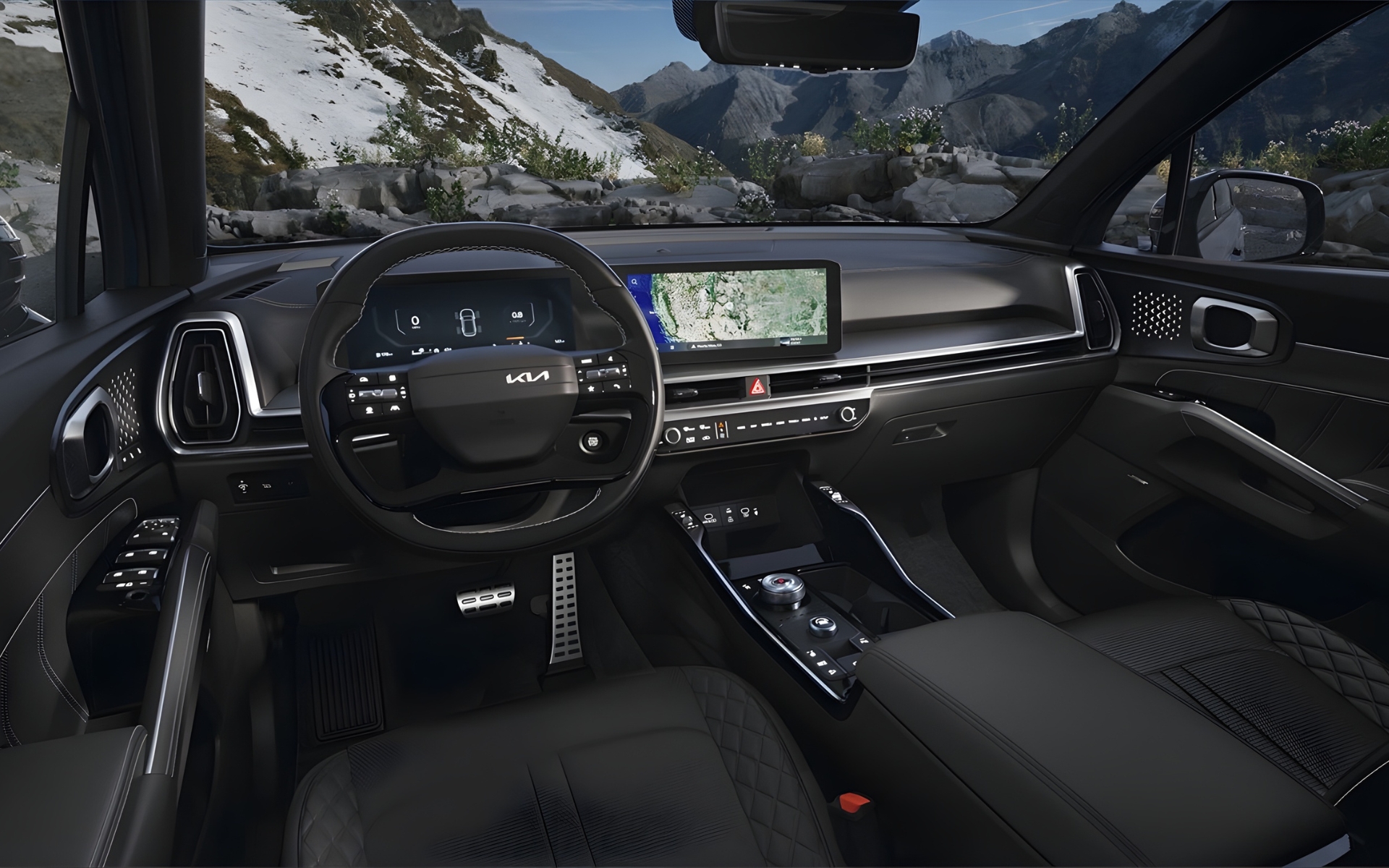 Every 2026 Sorento PHEV includes Kia Connect telematics. This system lets you lock or unlock doors, start the vehicle remotely with climate control, and check vehicle status from your phone. Plug-in hybrid models add battery status monitoring, charging controls, and scheduled charging, so you can plan your energy use at home or on the go. A 12.3-inch multimedia interface supports Android Auto and Apple CarPlay, with SiriusXM and Bluetooth built in. Built-in navigation and premium Bose audio are also available for a richer drive.